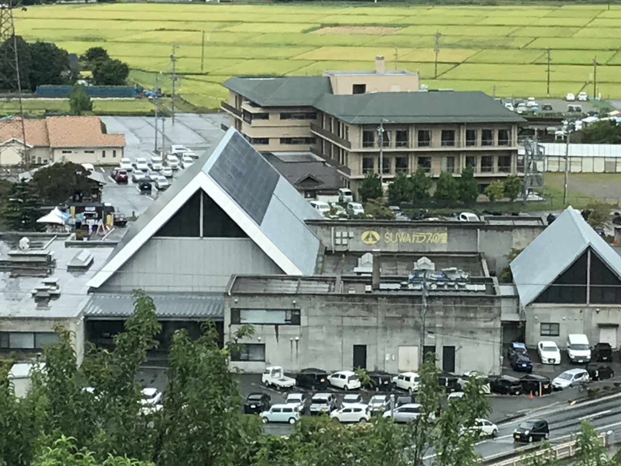 東京へ向かう途中、諏訪湖SAから見かけることができたので興味が湧き、ちょっと寄り道しました。中々見ごたえのあるガラス作品の数々。ガラスでできた野菜も面白かったです。たくさんのお土産品もありましたが、ガラス製品はチョット持ち帰りが心配で手が出ませんでした。