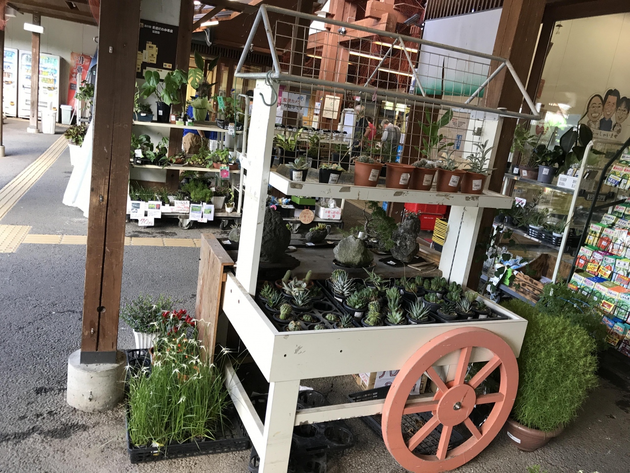 長良川沿いにある道の駅。駐車スペースの用地に限界があったのか、人気のスポットなのでいつも車で駐車場は満杯です。美濃地域の農作物や加工食品がたくさん販売されておりレジも長い行列でした。農家の方が作った野菜や花の他に、盆栽や多肉植物までお店に並んで、見ているだけでも楽しかったです。