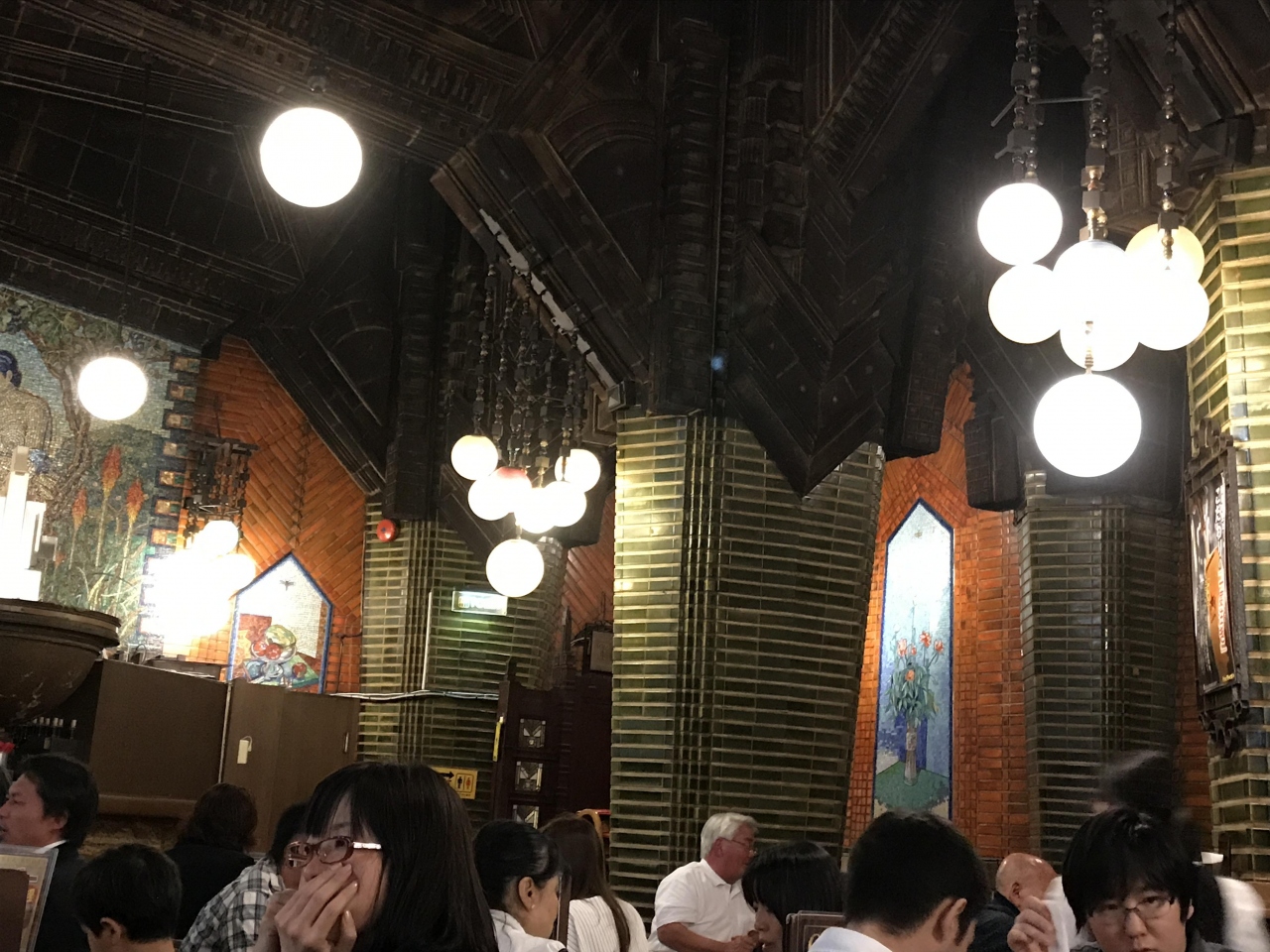 一番大好きなビアホールです。夏の暑い時期は満員で順番待ちですが、涼しくなるとたまに空いています。空襲にあっても生き残った建物のすすけた天井に歴史を感じます。柱の横の丸い照明はビールの泡をイメージしたものだそうです。戦前の雰囲気をまだまだ残しています。