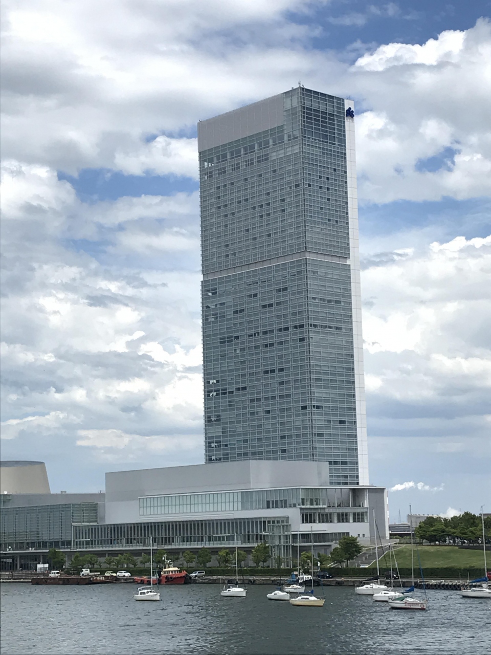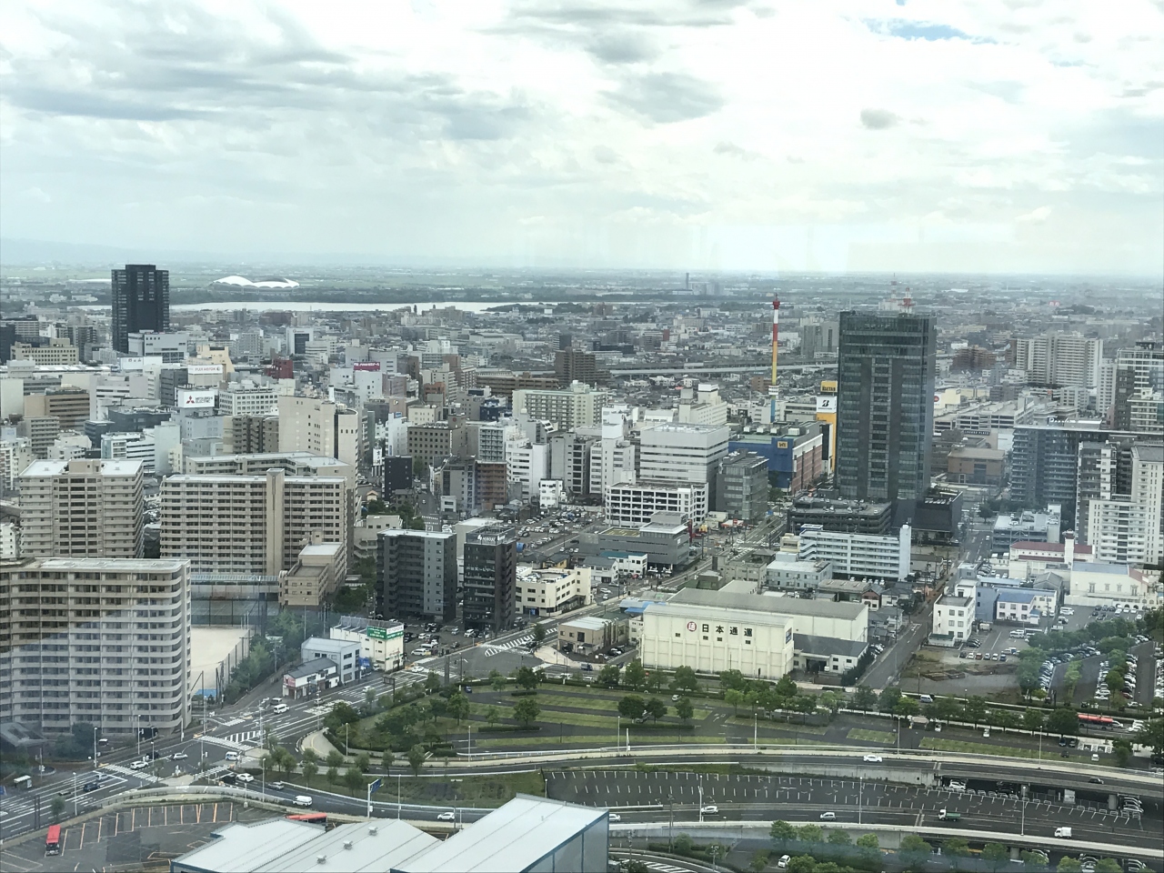 新潟駅から歩いて向かったのですが、建物の大きさを実感しました。見えているのに歩いても歩いてもたどり着けない。会議場での要件まで時間があったので展望台に上ってみました。新潟市の街並みからからぐるっと360度見渡せます。天気が良ければ絶景です。