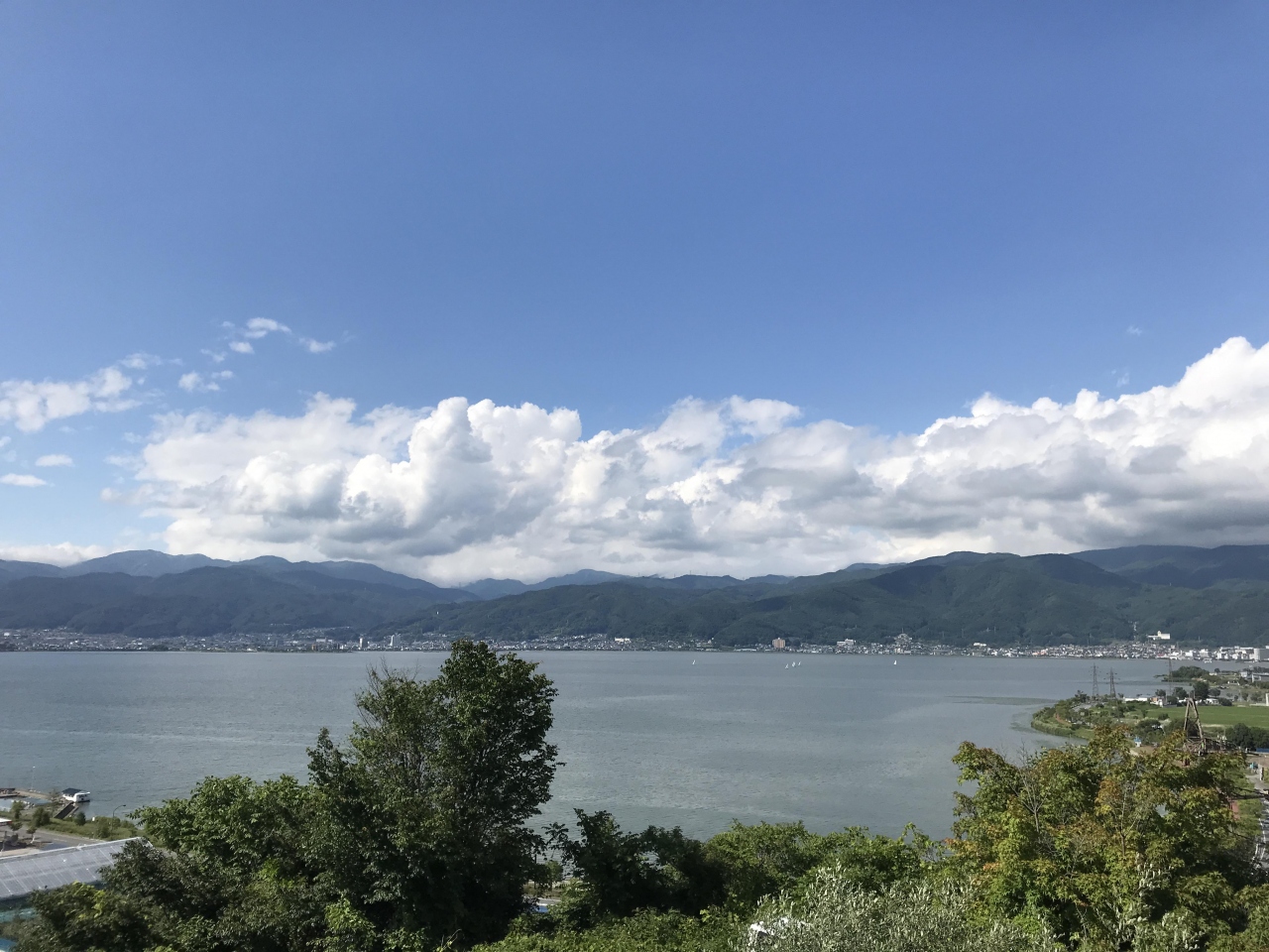 湖の周りは車で一周1時間ぐらいかかる大きさでした。周りは趣のある古い町並みや自然の風景に恵まれていました。帰りに最諏訪湖サービスエリアからの眺めを楽しみました。近くで見ている風景とは違いとても雄大な湖の風景を見せてくれました。