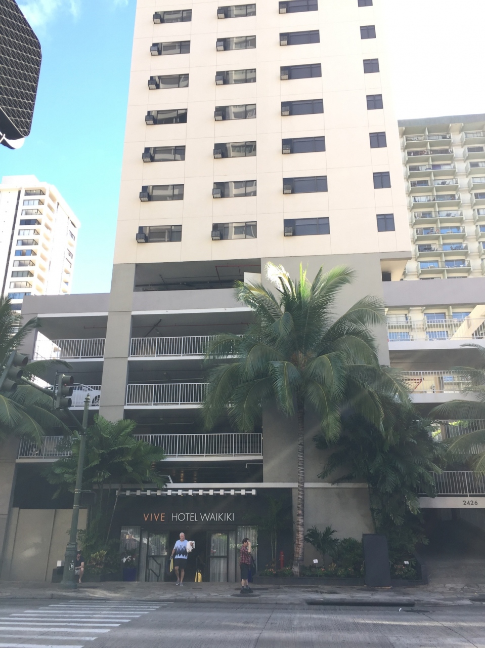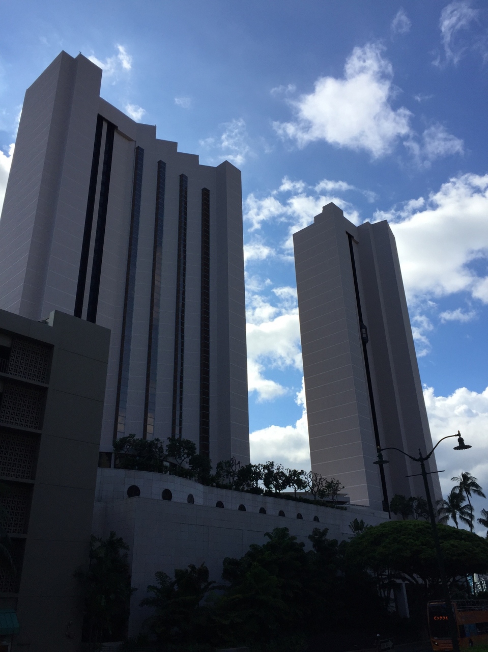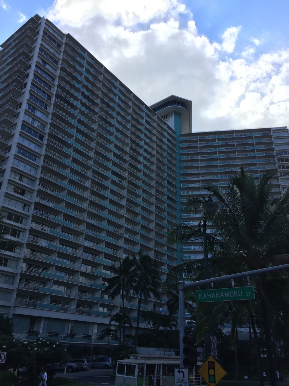 ワイキキの東側にあり、中心部に行くには少し歩くことになりますが、ホテルの近くにはトロリーバスのバス停があるので、そのまで大変ではないと思います。