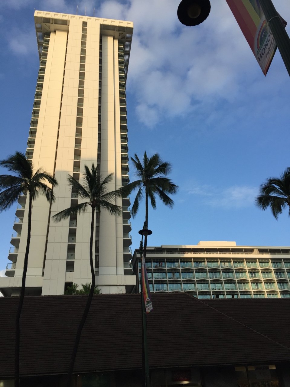 ワイキキ中心部からやや東側にある、ワイキキの目抜き通りのカラカウア通り沿いに建つ、高級リゾートホテルです。