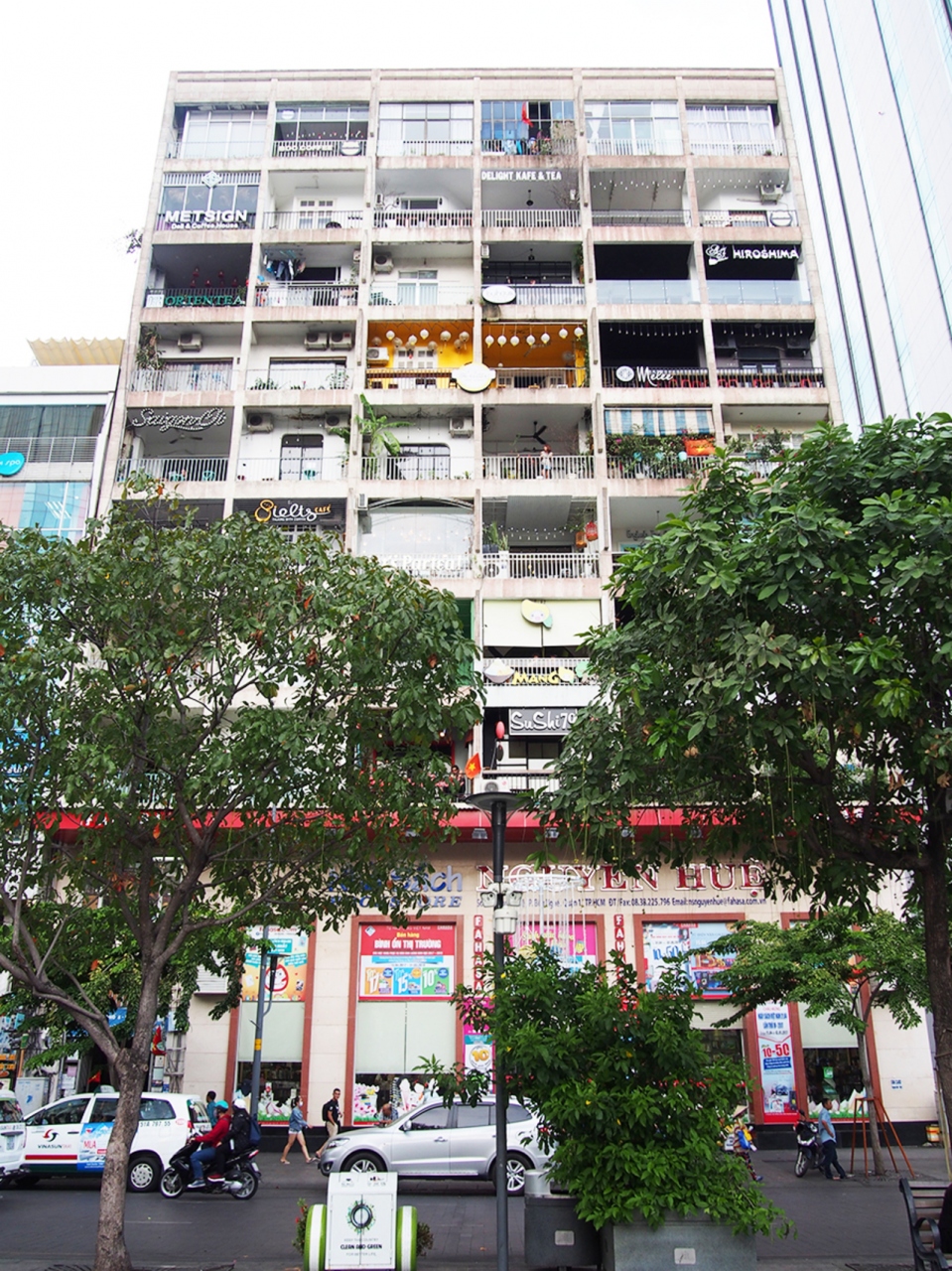 ホーチミンのメインストリートのグエンフエ通り沿いにあり、いまインスタで人気の古い雑居ビル内の大型書店です。
