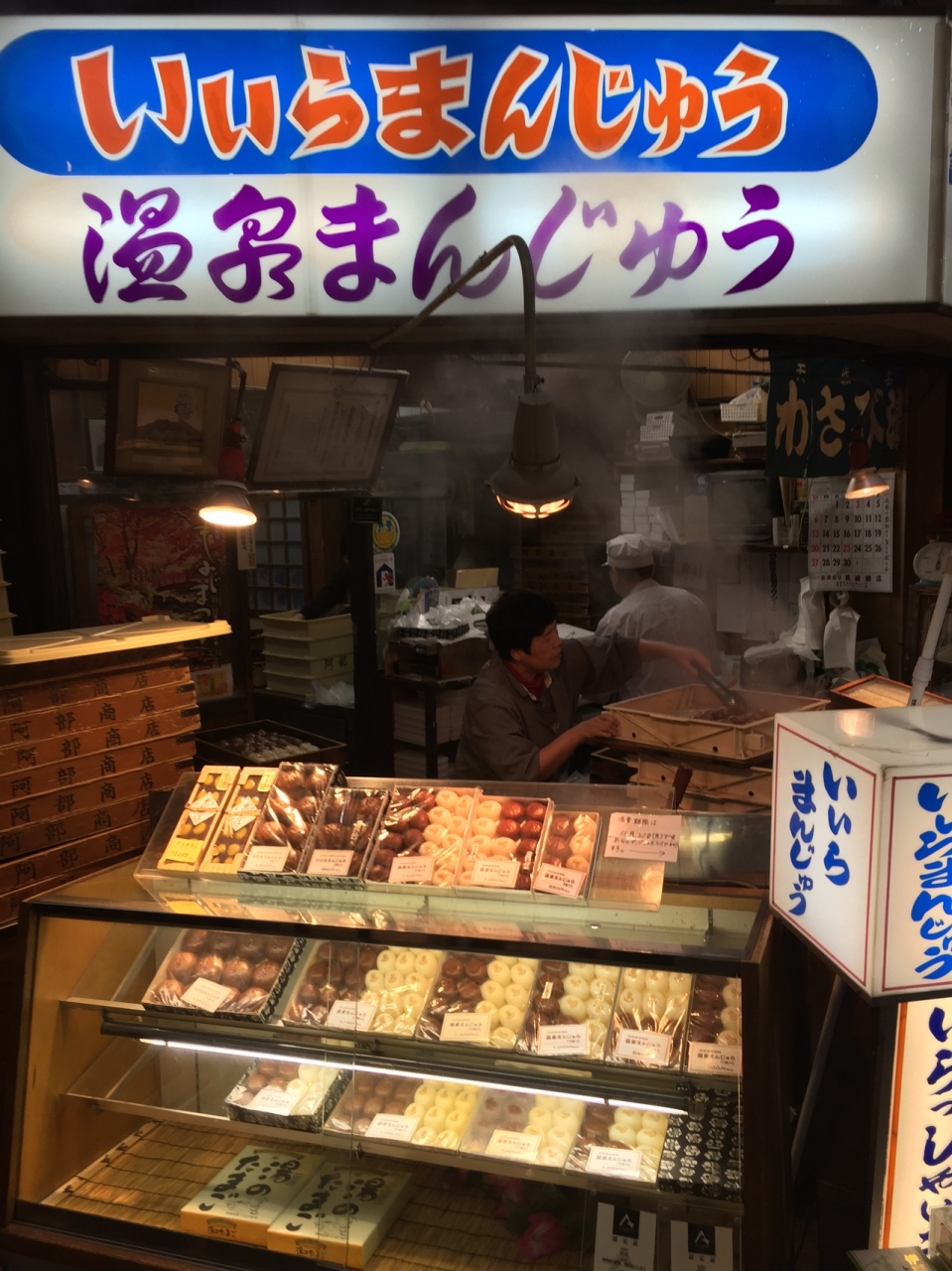 商店街には、温泉まんじゅうや揚げかまぼこ、銘菓、お菓子など、熱海のお土産が全部ここで揃うほどの、多くの店舗が立ち並びます。