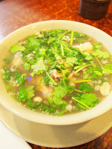 アラモアナ・センターから徒歩圏内にある、オックステールスープが名物のレストラン。パクチーが結構入っているので、嫌いな人は「ノーパクチー」と伝えたほうがいいと思います。最後にライスを入れて雑炊風にして食べるのがオススメ。