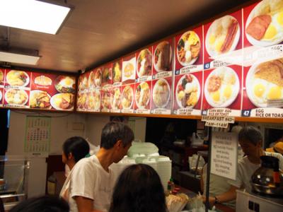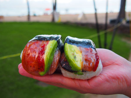 大人気のおむすび屋さんです。朝の7時前ぐらいに行ったのですが5,6人並んでいました。並び始めてから受け取りまで20分ぐらいかかったので、朝急いでいる人は要注意です。持ち帰りでワイキキビーチで食べるがオススメ。