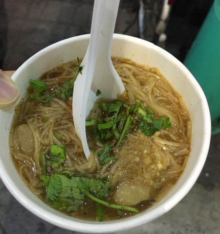 台北と言えば小籠包だけではなく麺線もあります。そうめんのような麺とカツオ出汁のスープがとにかく美味しいです。おやつ感覚でつるっと食べられるものです。ただし立ち食いなので熱い入れ物を持ちながら頂くのはちょっと大変かもしれません。レンゲで食べるのもちょっと食べにくいです。お酢やにんにく、チリを入れたりするとまた違う味を楽しめるのでオススメです。とにかく一度食べてみてください。