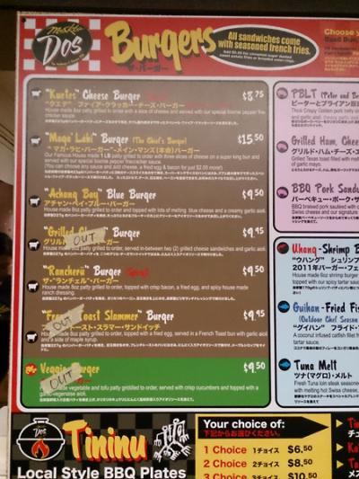 今回初グアムのMeskla Dosに行ってきました。ディナーとして行ったら3品ほど完売していましたが、私がオーダーしたかったメニューはまだ残っていたので良かったです。かなり肉肉しかったですがザ・アメリカンなハンバーガーを食べている感が良く、そして美味しかったです。