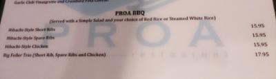 今回2度目のプロア。本店と2号店があり、今回は2号店へ。料理が出てくるまでなんと1時間かかりました。私たちだけではなく他のテーブルも待たされていました。ま、グアムタイムなので仕方ないと思うしかありませんが。。。味はめちゃくちゃ濃くってニクニクしくって美味しかったので良しとします。
