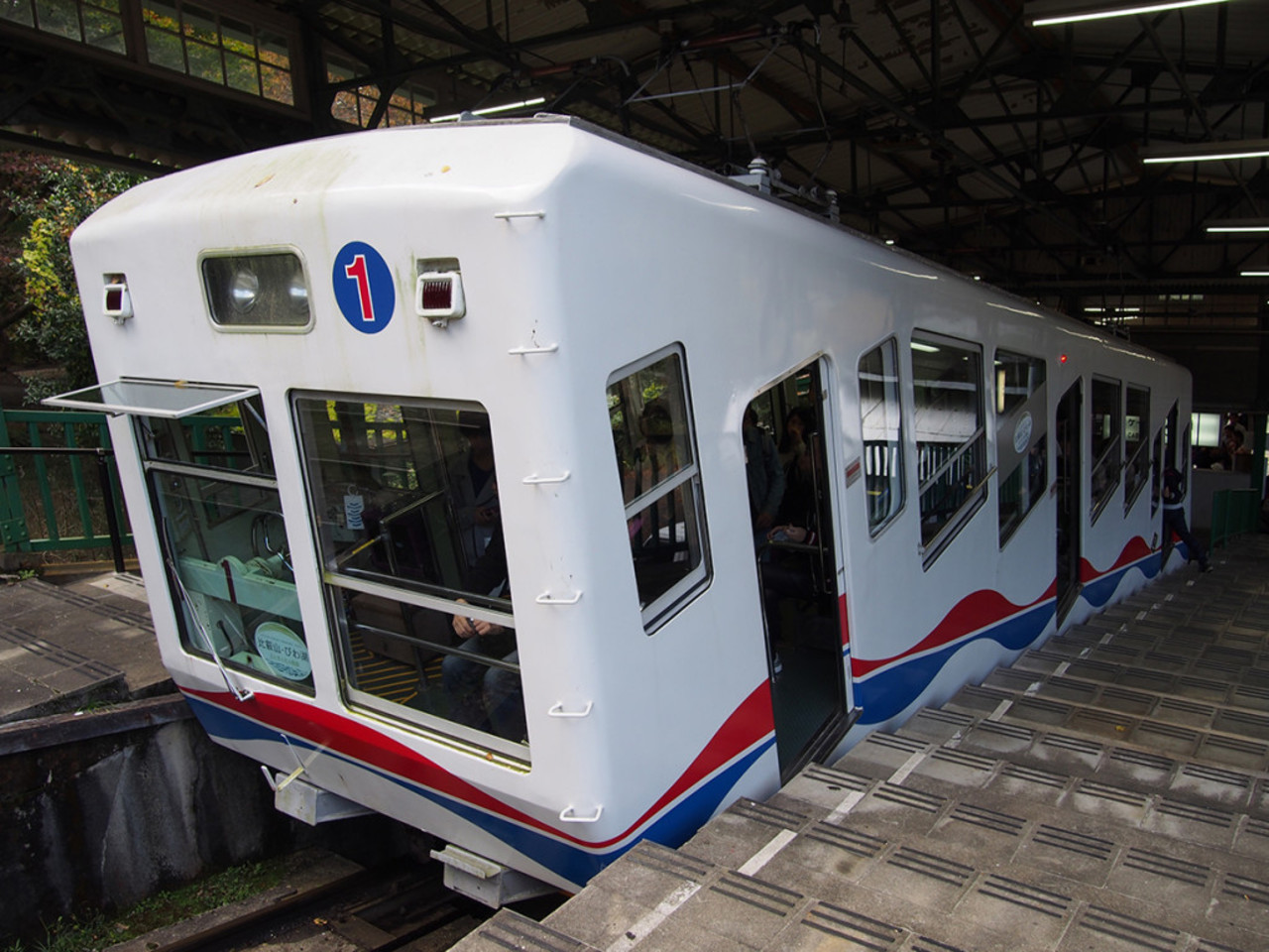 このケーブルカーは日本一の高低差があります。かなりの急勾配を登り降りするので、かなり必見です。