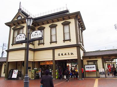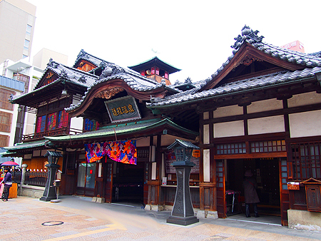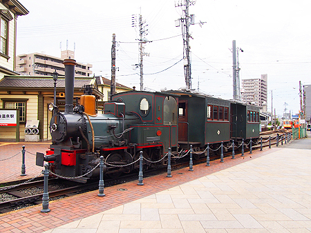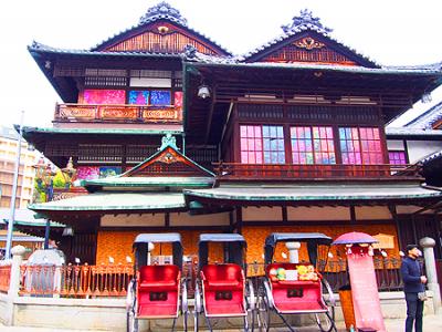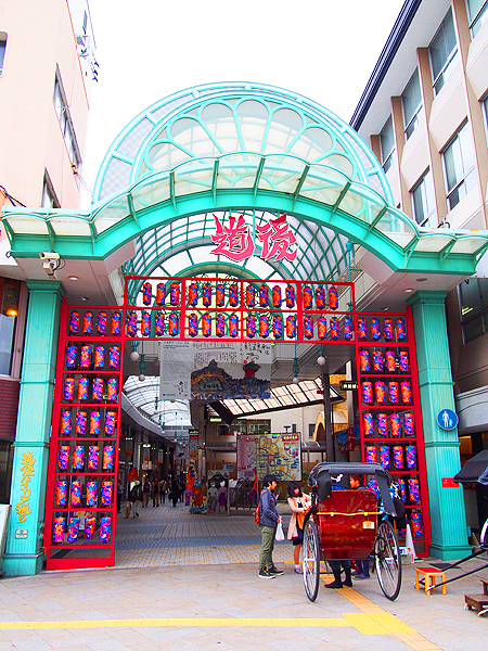 路面電車の道後温泉駅から道後温泉本館を結ぶ通りです。
