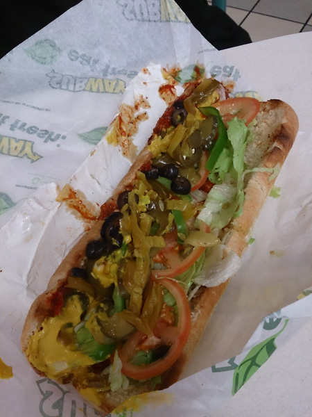 アメリカに行くと必ず行くのがサブウェイ。日本にはないメニュー「ミートボール」をチョイス。ここグアムでももちろん食べることができます。サブウェイの良くないところはスタッフによってクオリティが違うとこかなーと思います。ミートボールにビネガーとマヨをかけて、ベジーをたっぷり入れてもらえると絶品ですよ。