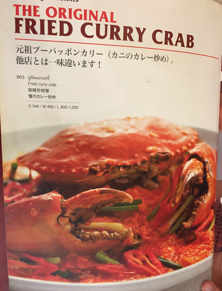 前回バンコクに来た時にプーパッポンカレーを頂いてすごく美味しかった記憶。今回は期待が上回ってたこととスタッフがオーダーを取り忘れて1時間待たされたことがあってあまり感動しませんでした。こんなに甘かったっけ?という感じ。ですが、なぜかトムヤムクンスープが美味しかったです。