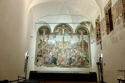 最後の晩餐の反対の壁にあるゴルゴダの丘でのイエスの磔刑の絵も見ることができて大満足しました。- 旅行時期