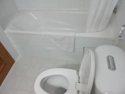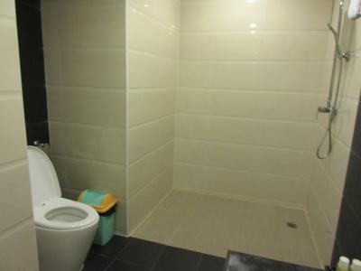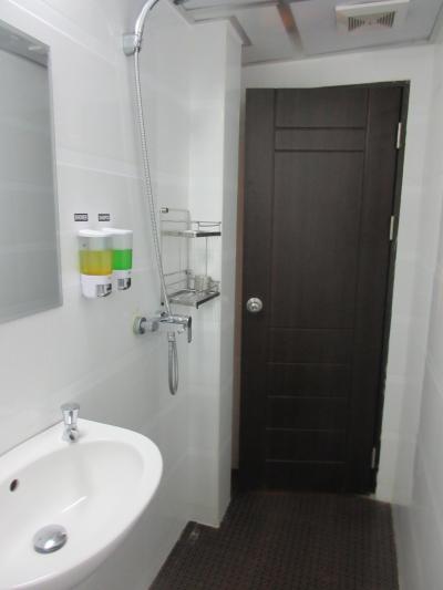 浴室は、洗面とトイレと浴室は一緒で、狭くないのですがコンパクトな作りにになっています。ただ、バスタブはなくシャワ−のみで、そのシャワ−室は比較的広いのですがトイレとの仕切が少し短いため、注意しないと洗面所の床が少し濡れる場合があるので注意して下さい。水圧、水温は特に気になりませんでした。