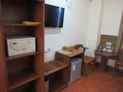 設備は、薄型テレビ、冷蔵庫、セ−フティボックス、無料の水など、一般的な設備は全部そろっていました。NHK Worldも見れました。