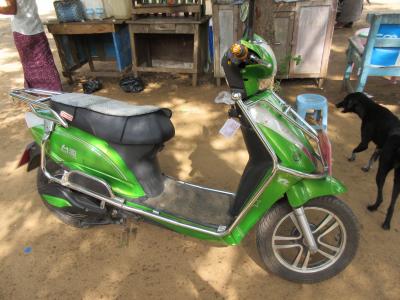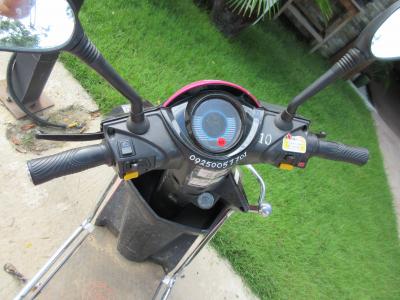 操作は、スイッチをONにし、右ハンドルのグリップを回すとスピ−ドがで、両サイドのレバ−を引くとブレ−キがかかる仕組みです。自転車が乗れれば大丈夫ですが、最初は少し大変です。でも10分もすれば一応大丈夫でしょう。料金は、ホテルで申し込むと12000〜15000K/dayですが、ホテルの周りにはレンタル店があり、そこでは、古いものは約8000K/day、新しいものは10000K/dayでした。営業時間は、7:00〜20:00ですがお店によって若干違うようです。