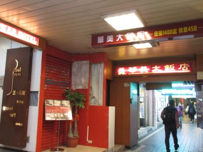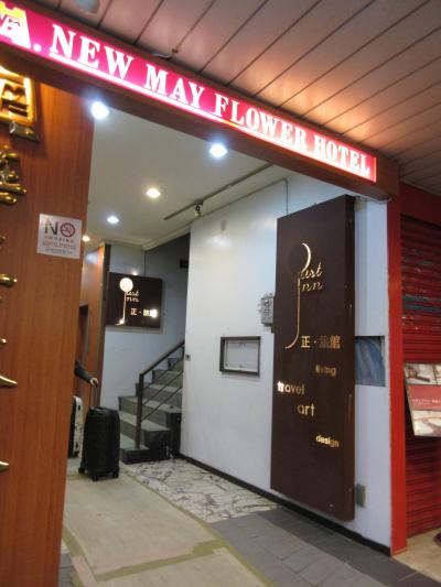 立地について:台北駅(国鉄、MRTとも)から約5分、國光客運台北駅から約2分、MRT北門駅から約5分と立地的には非常に便利です。ただし、ホテルの看板が華美大飯店(New May Flower Hotel)の入口の右奥にあるだけのため、気づかず何度もホテルの前を通り過ぎてしまいました。しっかりチェックしていかないと迷子になります。華美大飯店が目印でその3階がJust Innです。また華華大飯店(フラワ-)は別のホテルなので間違わないように。