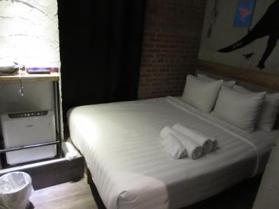 部屋について:料金的にも非常に狭く、トランクを開けるスペ−スもなく、ベットの上でしか開けることができませんでした。窓はありますが、隣と接しているため開けることはできません。室内は汚くはありませんでしたが綺麗とも言えず、なにせ狭いため物を置く棚や机がなく、書き物も全くできません。ただベットは良かったです。