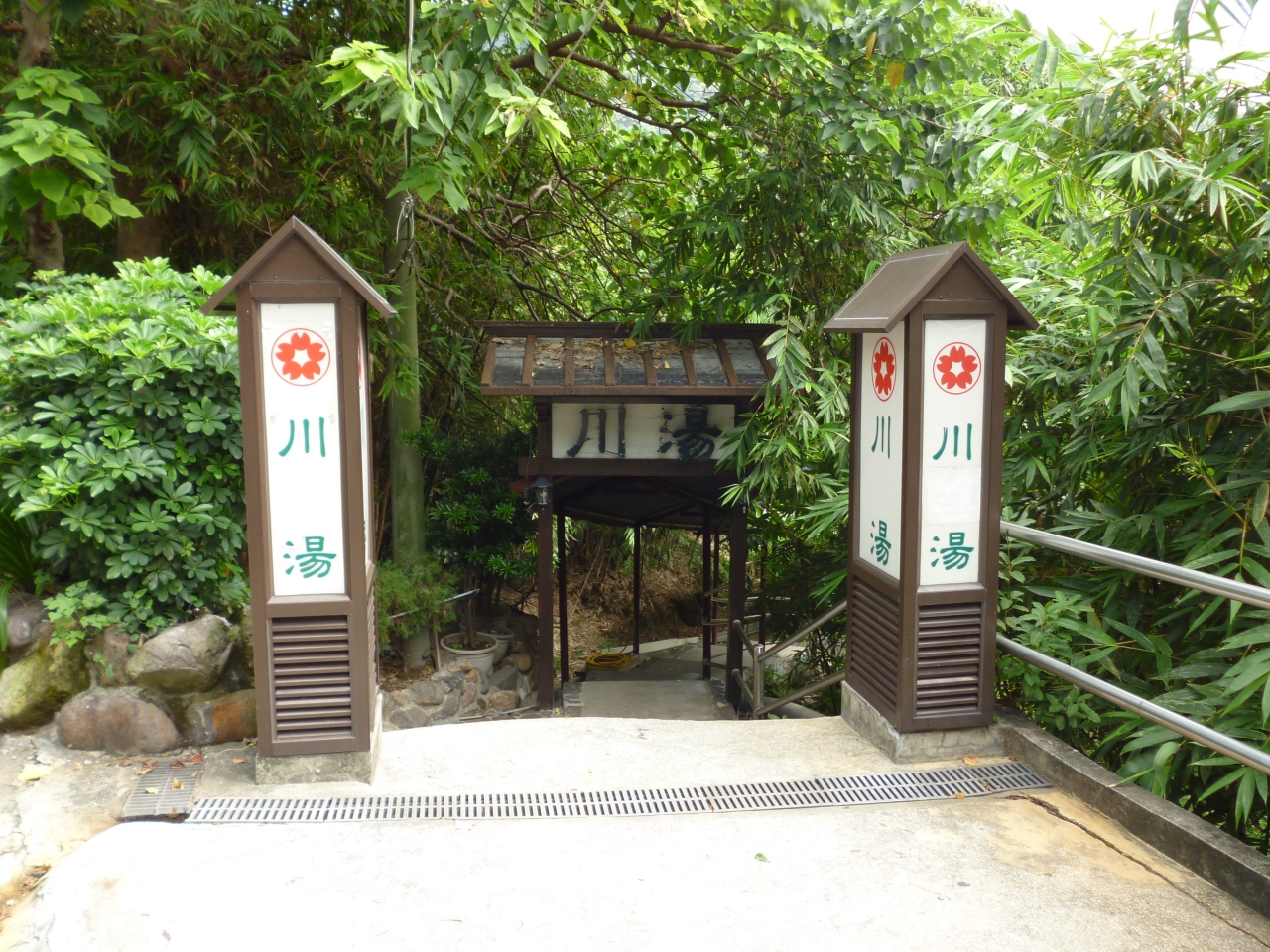 まず行き方は、MRT淡水線石牌駅から508路バス(だいたい15分毎)で、「行儀路三」で下車(約20分)、前方に30mほど進むと川湯の看板があるので、そこを本線の斜め右の道を100mほど下ると川湯の入り口があります。それから階段を50mほど下ると本館・食堂があり、左手に日本語が通じない受付、右手に温泉があります。