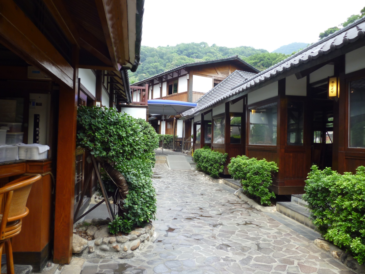 場所は、まず新北投前駅の広場の正面にある北投公園が目標です。そして公園の左側の道(中山路)ではなく、公園の右側の光明路を上っていって下さい。4〜5分で右手に日本の加賀屋が見えてきますので、そのままあと約2分で右側に瀧乃湯が見えてきます。