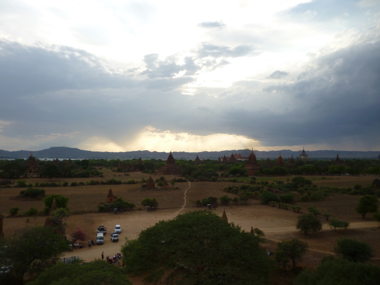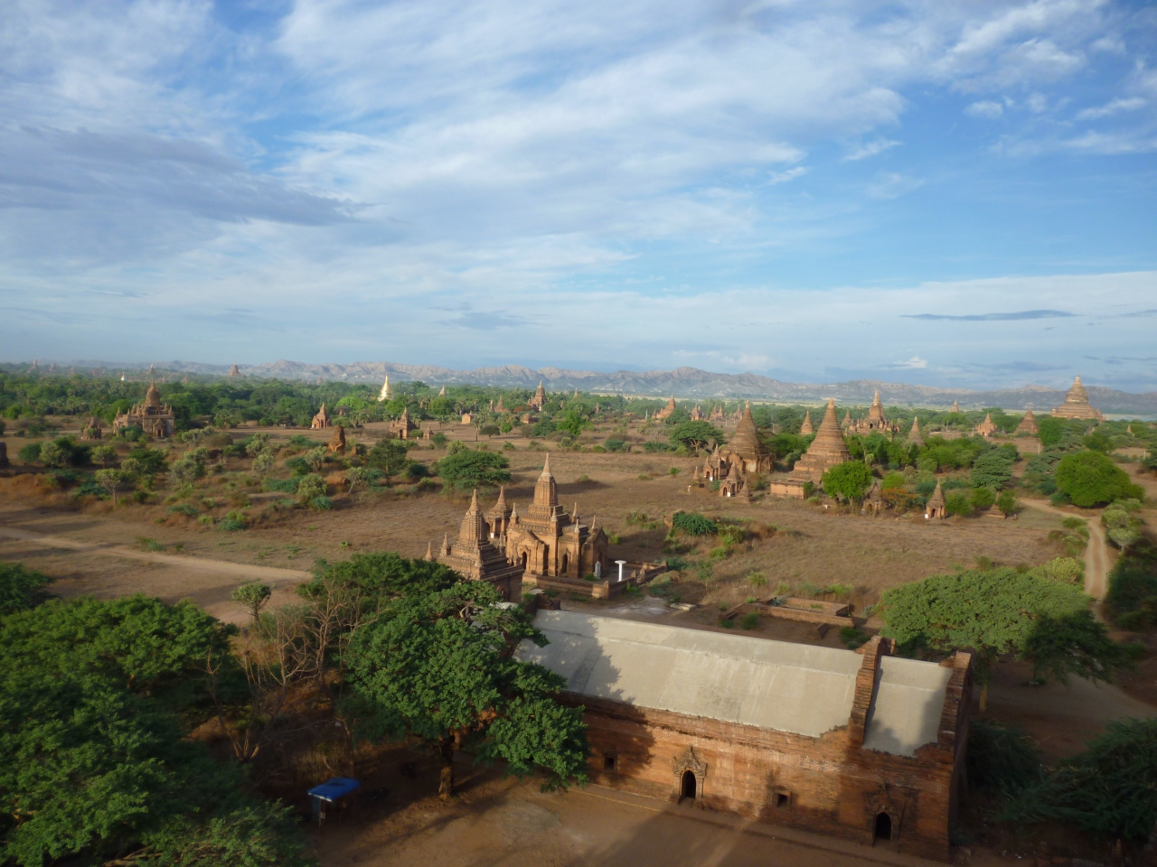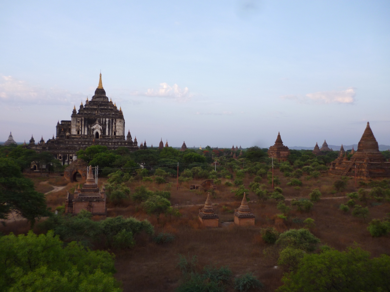 参考に:朝日・夕日を、寺院の上段から見れるのは、シュエグ−ヂ−寺院とシュエサンド−・パヤです。穴場として、ティ−ロ−ミィンロ−寺院からニュウンウ−村の方へ約400m程行った右側(SHWE LAKE TOOと書いてある茶色の看板有り)の奥に、上段にあがれる寺院があります。観光客はほとんどいないし景色もなかなかでお薦めです。- 旅行時期