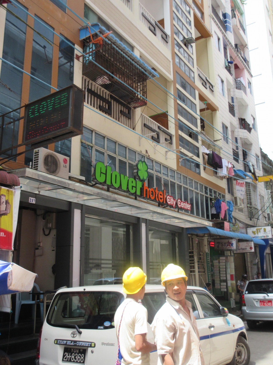 昨年も宿泊した「クローバー・シティ・センターホテル」は、スーレー・シャングリ・ラ・ヤンゴンの裏になり、セントラルホテル横の道を少し入った所でわかりやすく、タクシ−の説明も楽でした。また、近くに日本円が両替できる店、ス−パ−、市場、レストラン、マッサ−ジ店、等があり、何処に行くにも便利で、立地条件は非常に良かった。