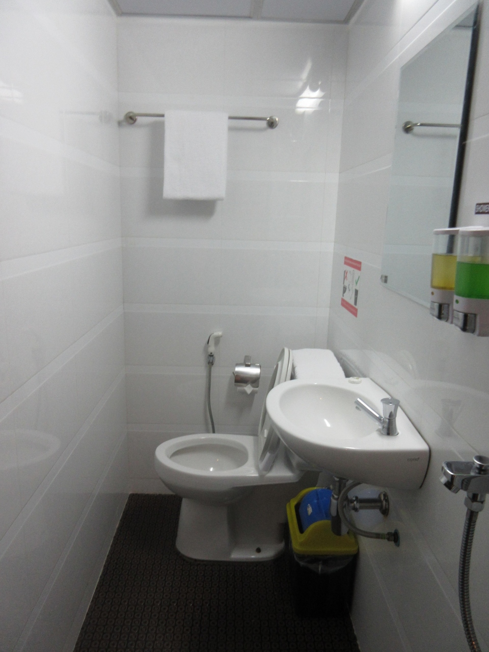 トイレ・浴室について:このクラスのホテルでは珍しくウォシュレット設備で良かったです。ただし浴室が狭く仕切がないため、シャワ−を浴びるとトイレに水がかかり大変でした。水圧、水温は良好でした。洗面台は、模様か汚れかわかりませんでしたがイメ−ジ的には汚く若干狭く、水を溜める栓もありませんでした。