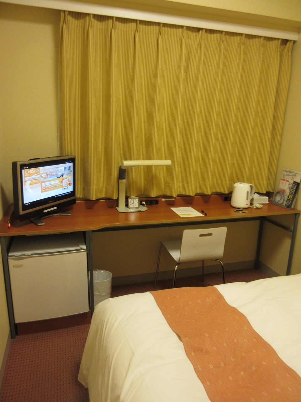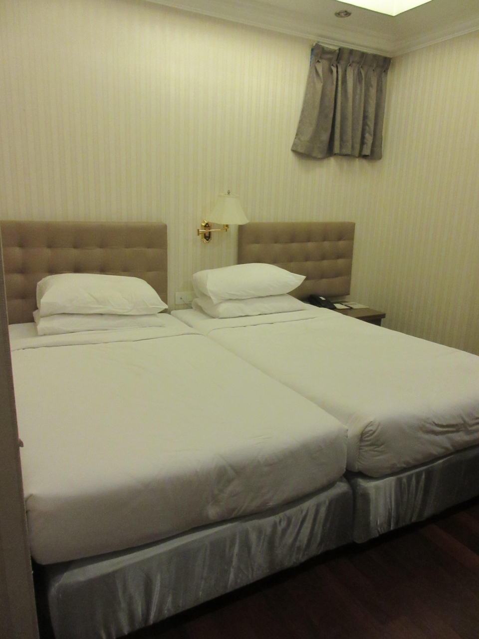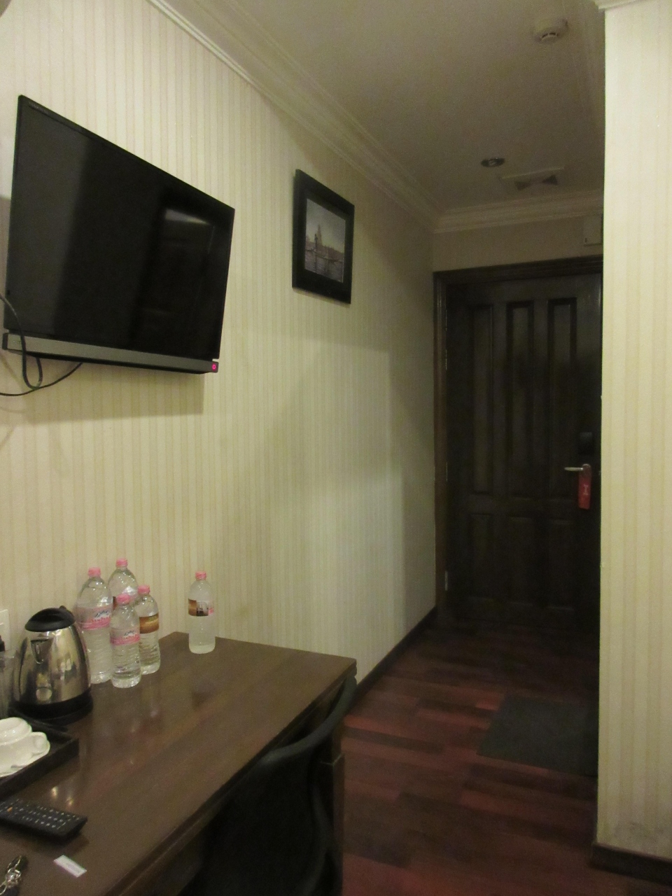 部屋について:料金的にも非常に狭く、トランクを開けるスペ−スもなく、ベットの上でしか開けることができませんでした。窓はありますが、隣と接しているため開けることはできません。室内は汚くはありませんでしたが綺麗とも言えず、なにせ狭いため物を置く棚や机がなく、書き物も全くできません。ただベットは良かったです。