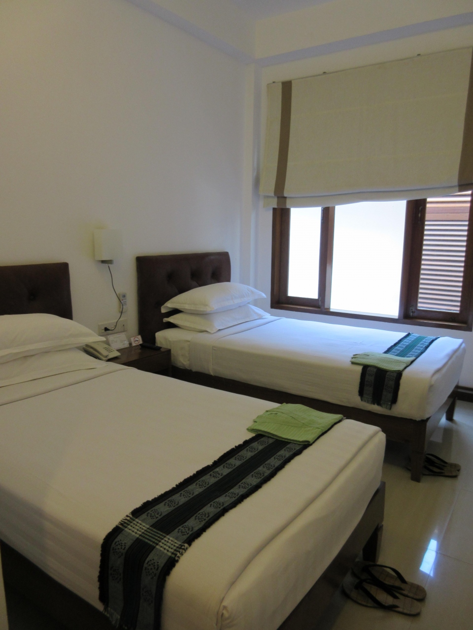 部屋は、綺麗でそこそこの広さ(日本のビジネスホテルのツインよりは広いです)ですが、浴室は広いです。ただバスタブは無く、水圧・水温は若干不満はありますが、ミャンマ−としては良い方であると思います。