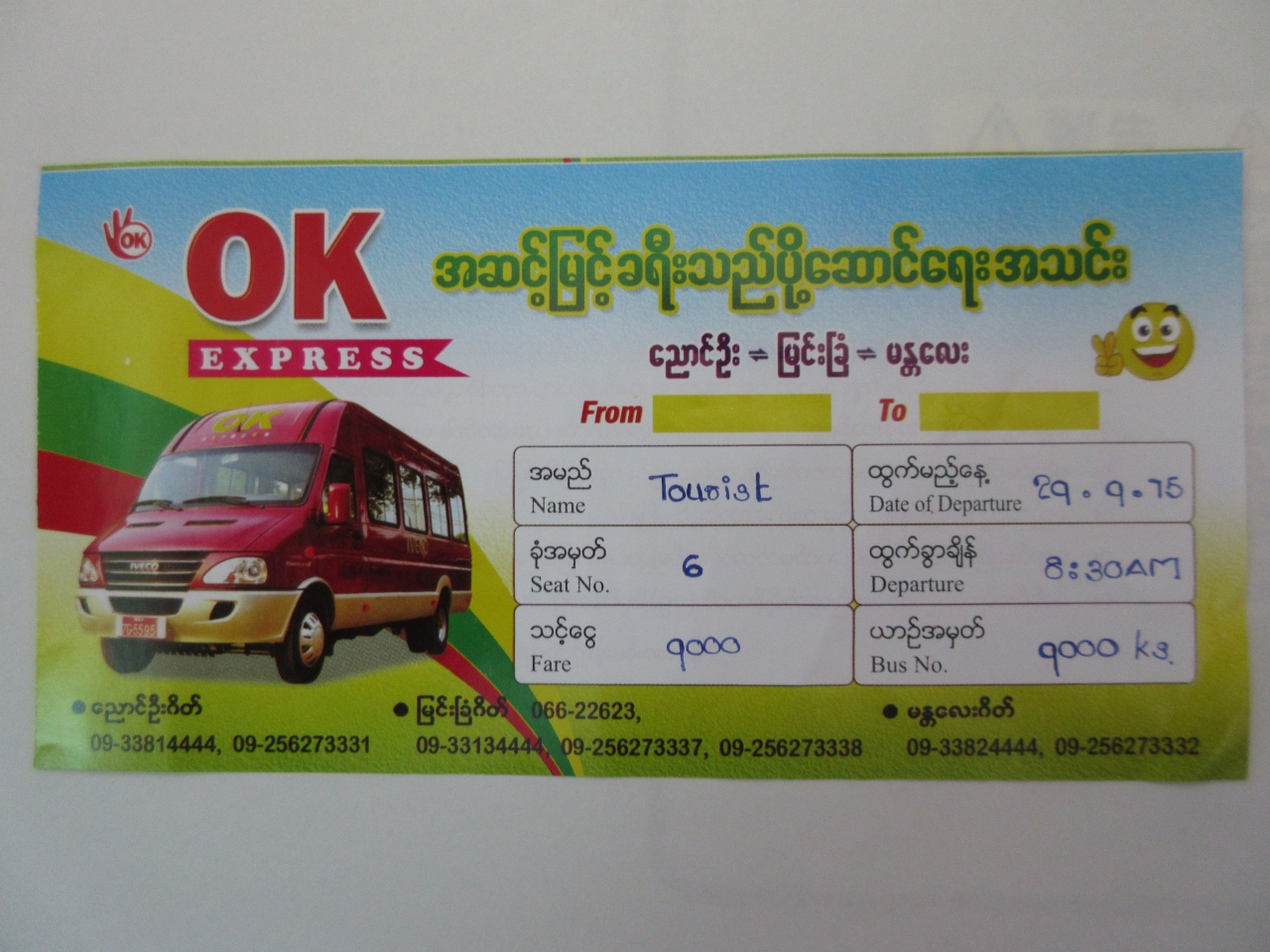 2.タクシ−:流しのタクシ−はほとんど無く、空港やバスタ−ミナルで待機しています。そのためタクシ−に乗った際に交渉するか、運転手が名刺をくれるので後で連絡をするパタ−ンが多いです。料金は1日40000K〜60000Kとなります。それ以外の方法は、ホテルでチャ−タ−タクシ−をお願いすることになり、料金はタクシ−と同程度になりますが台数が少ないで注意です。数名で利用する場合は薦めです。