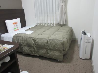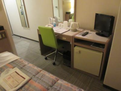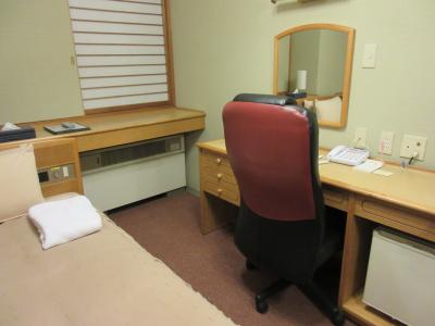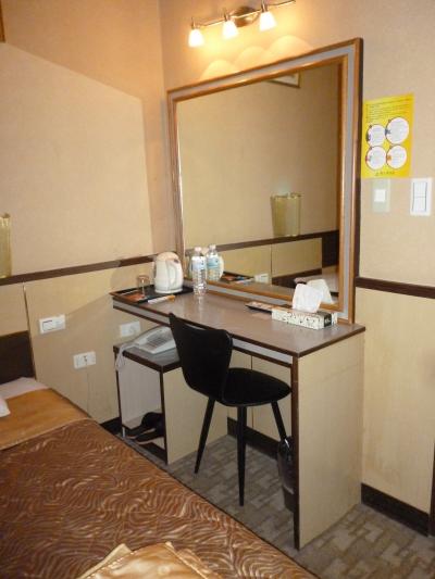 建物は若干古いですが、あまり古さは感じさせません。今回は、訳ありの部屋(窓から外が見れないだけ)のため、価格は4500円と安かったのですが、部屋の広さも約16?と問題なく、ベットもセミダブルで硬さも丁度良く、綺麗で清潔で、アメニテイも問題はなかった。設備は、冷蔵庫、イオン空気清浄機、ポット、お茶、お菓子?が有り、これも問題はなかった。また、各階に自販機もあって便利でした。