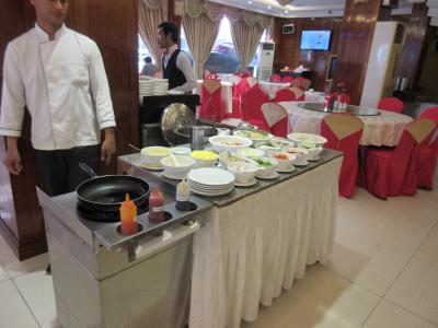 朝食は、ビュッフェスタイルで、フォーとオムレツをその場で作ってくれます。