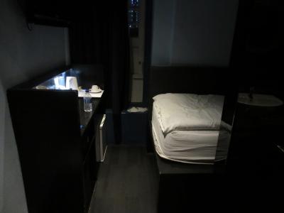 部屋は、シングルは4畳(浴室を含み)ほどの広さで非常に狭いのですが、コンパクトにうまく配置されているため、スーツケースを広げるスペ−スはありました。備品として、液晶テレビ、冷蔵庫、ポット、セ−フテイボックスがあり、Wi-Fiは比較的早かった。 浴室はトイレと共通で仕切はなく、トイレには水はかかりませんが床は濡れます。また、シャワ−の水圧・温度は、全く問題なく、シャンプ−、石鹸は設置されていますが、歯ブラシはありません。なお、ハンガ−と無料の水1本はありました。