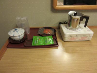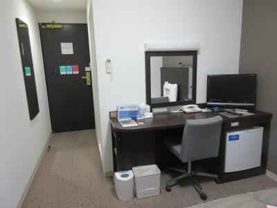 備品は、ポット、お茶セット、ペット水(2本)、一般的なアメニテイ、テレビ(32型?)、スリッパはそろっていますが、冷蔵庫とセ−フティ−ボックスはありません。冷蔵庫に関しては夏に泊まりましたが、お土産に冷却するものがない場合は近くにコンビニもありあまり必要がありませんでした。
