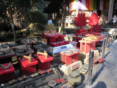 また、創建に貢献した僧が、天狗になり身を山中に隠したと伝えられることから、天狗にかかわるものが多く、天狗の銅像やとてつもなく大きな天狗の高下駄などが見ることができます。この高下駄は左右そろって役割をなすことから、夫婦和合に良いと言われていますので、ご夫婦でお参りしたら良いのでは。