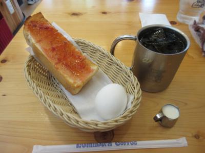 3.朝食がコメダのモ-ニング(4切り半分とゆで卵と飲み物)で、中途半端で少し物足りない