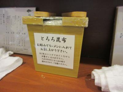 さらに関東のラ−メン屋では見られない、とろろ昆布や刻まれた柚子皮が置いてあり、それを入れるとまた別格の味になり、いろいろ楽しめました。ただ、柚子皮を入れすぎるとス−プの味が変わりすぎるので注意を