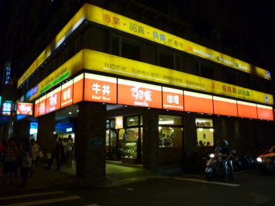 小龍包で有名な蘇杭點心店に行こうと、MRT古亭7出口をでたら人がいっぱい。誰か有名人がいるのかなと思ったらそうでもなく、ただの行列。どんな店の行列かと思ったら、見たことがあるマ−ク。あ!すき家だ−。