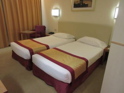 ホテルの内容は、清潔で綺麗で、狭くはなく、防音も他のホテルから比べると良く、冷蔵庫、アメニティ、スリッパ、セ−フティボックス、ポット(コ−ヒ−、紅茶パック付)があり、設備に関しては非常に良かった。