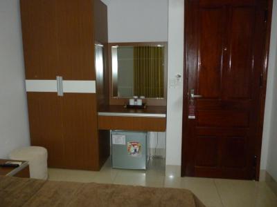 ダナンの街の中心にあり、ダナン大教会1分、ハン市場、インドチャイナリバ−サイドタワ−まで5分以内、唯一の大型スパ−のBigCまで15分です。また、近くににはベトナム料理店、ステ−キ店、イタリア料理店、有名なカフェ・バ−や大衆食堂もあり、立地的には最高の場所です。ホテルは1階がフロントとロビ−とレストランで2階〜6階が客室です。部屋は広くはないが狭くもなく、綺麗で、日本のビジネスホテル風です。アメニテイも一通りそろっていて、テレビは日本のNHK総合(NHKワ-ルドではありません)が映り、シャワ−の水量も問題ありませんでした。また、フェイスタオルが無かったのでマネ−ジャ−に質問したところ、フェイスタオルで靴や汚い所を拭く人がいて、それを洗濯してお客様出したくないのでバスタオルを2枚用意しているとのことでした(納得しました)。部屋に関しては、セイフティ−ボックスが無かったこと以外は問題なく、価格的には大満足でした。朝食は、洋風、ベトナム風、ベジタリアンの中から1つを選び、その選んだタイプの数種類のメニュ−から1つを選ぶ方法です。そこに、飲み物とフル−ツなどがつきました。その料理は美味しくて、もしディナ−があれば食べたかったです。