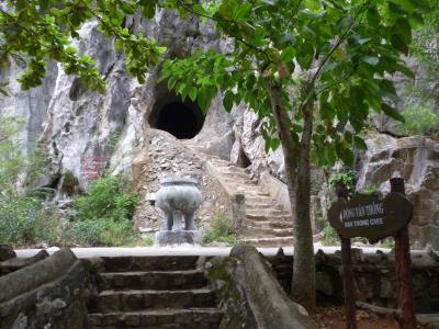 五行山はダナンからホイアンに行く途中にあります。行くには、ホイアンに行く巡回バスかタクシ−になります。バスは約25分で、本来ならば料金は18000ドンですが外国人は30000〜100000ドンを請求されますので、初めから30000ドンを渡しマ−ブルマウンテン(五行山)と行って下さい。そうすると、五行山付近になると下りるよう合図があります。下車後は道路を横断し、石材店が並んでいる道(五行山入り口)を150mほど進み、左折し50mほどすると五行山登山口があります。入り口の左側に料金所(15000ドン)があります。タクシ−なら7〜10ドル(バイクタクシ−安いが遠くて危険なのでお薦めしません)でエレベ−タ−が設置された入り口に行くことがあります。はっきり言ってエレバ−タ−はあまり利用価値がないのでお薦めしませんが少しでも楽をしたい人はどうぞ。一般的には、バス側の登山口からで、雑な石の階段を10分程上るとお寺の入り口があります。後ろ側に展望所がありますので景色を見た後、お寺の門を通り寺の左側の通路を少し行くと4差路がありますので、まず左側に行くと大きな洞窟があり仏像が安置されています。次に4差路に戻り寺をバックに少し直進し、右側の道を行くとまた洞窟があります。その洞窟の仏像の後ろから1つ目の展望台の入り口です(狭く少しい大変です)が最高の景色です。下りてくるとまた、4差路に着きますので、次に直進して先ほどの道と逆の左側を行くともう一つの展望台に行きます。こちらからは海がよく見え、こちらも最高の景色です。下山は同じ道を戻るか、途中から裏の道を通り、3重の塔?を見てエレベ−タ−の方に行く方法もあります。健脚の方は1時間とちょと、女性の方でも2時間あれば十分です。軽い山道なので、ハイヒ−ルとスカ−トは止めて下さい。幻想的な洞窟と頂上からの景色は絶対にお薦めです。最後に、バスの乗り場はバスを下りた反対側で、バスが来たら手を挙げてバスを止めて下さい。なお、帰りは大聖堂の前でなくハン市場の付近です。ダナンに行ったら必ず行って下さい。