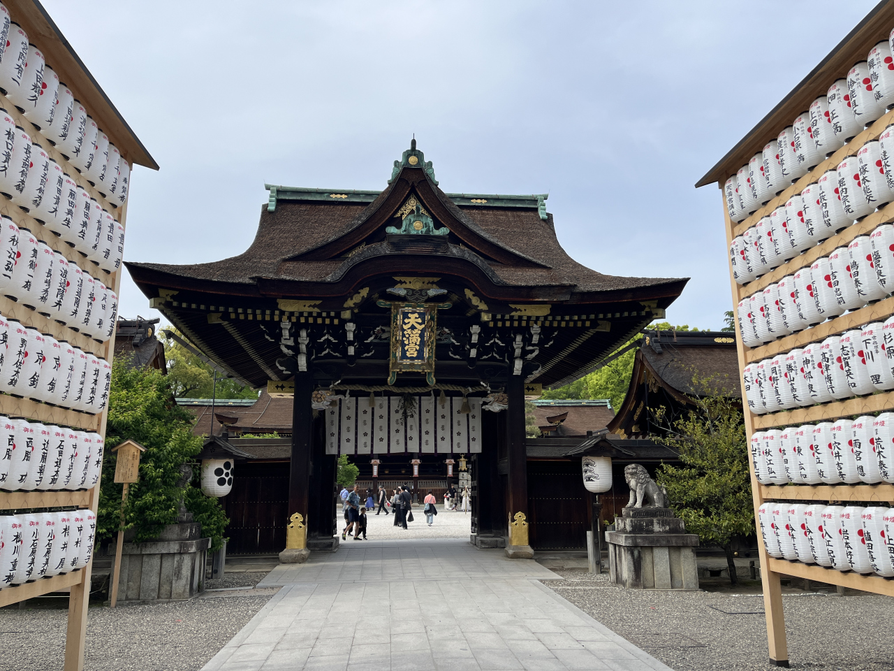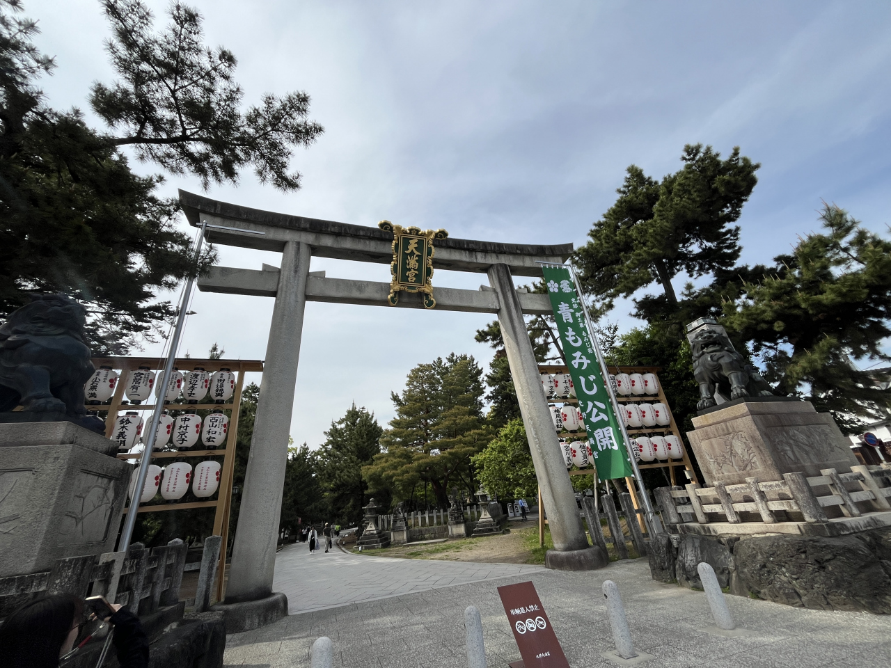 大きな一の鳥居をくぐり、参道を歩き楼門、三光門を通り本殿に。楼門には「半萬燈祭」と書かれた大きな提灯がつり下げられていましたし、三光門には金文字で天満宮と書かれた大きな扁額もあり迫力ありました。天満宮の総本山、さすがに立派な本殿ですね。