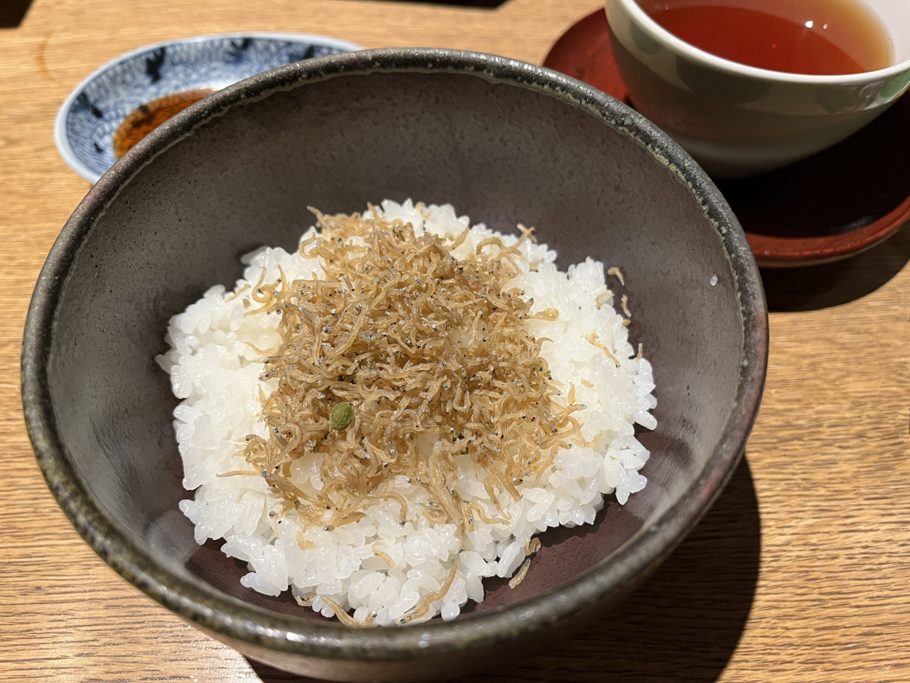 最後の〆は、だし茶漬け、ごはんにだしまき玉子を少しいれて、だしを入れて頂きました。〆としては最高です。10:15予約で11:30まで時間目一杯使って頂きました。帰りに、お店の方でおだしをお土産に買って帰りました。- 旅行時期