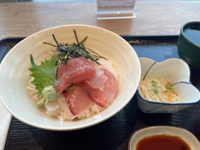 最初にレジで注文&支払いをして、料理ができると番号札で呼ばれるシステムです。鳥羽近海産の海鮮丼を海が望めるカウンター席で頂きました。ネタは、伊勢マグロ、スズキ、ワラサ、グレにコブダイです。身が締まっていましたね。晴れていればよかったのですが、あいにくの雨、どんより色の海を見ながらになりました。