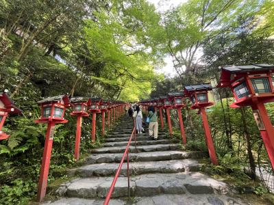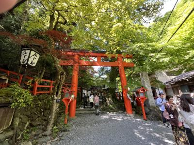 この後、奥の院魔王殿経由で貴船神社まで歩くか相談、時間もあるので歩くことに。距離はさほどないのですが、登りの階段が続いた後に下りの階段が延々と続くというちょっと大変な山道でした。階段を下り切ったところに西門があり鞍馬寺を後にしました。- 旅行時期