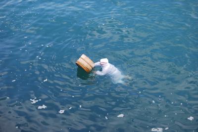 海女さんが乗った小舟がやってきて、すぐ近くで海に潜ってくれます。
