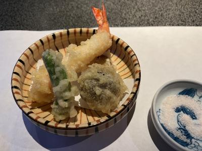 ゆばから始まり、お造り、湯豆腐、天ぷら、飛竜頭あんかけ、ちりめん山椒のふりかけごはん+お味噌汁、〆にデザートです。湯豆腐がなめらかで美味しく、天ぷらも美味しい!特に海老がぷりぷりでしたね。ちりめん山椒もいい味してるし、デザートもGOODでした。