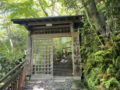 一通り写真を撮ったあと、絶景テラスで抹茶を頂きました。桂川と新緑を目の前に抹茶を頂く贅沢!です。最後に裏庭を散策し見学完了。1時間強の祐斎亭三昧でした。- 旅行時期